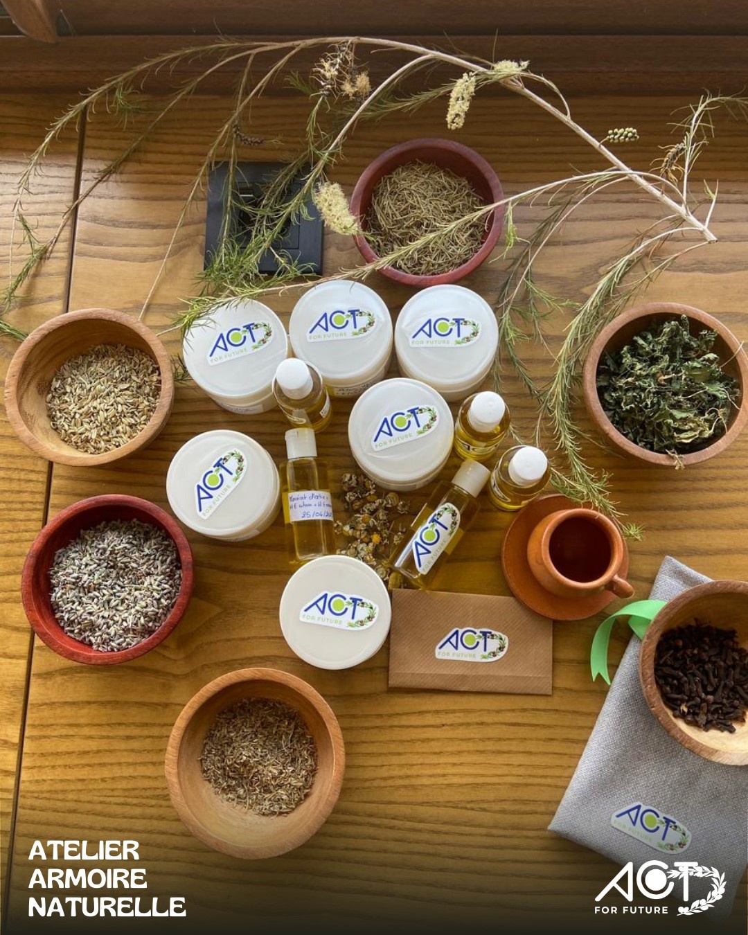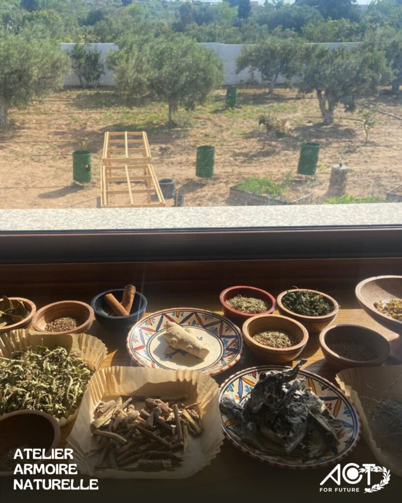 Le samedi 26 avril 2025, nous avons eu le plaisir de lancer notre tout premier atelier « Armoire Naturelle », organisé par ACT For Future dans le cadre inspirant de SPACE DOON, à Maamoura. Une matinée dédiée à l’exploration du monde des plantes aromatiques et médicinales, dans une ambiance chaleureuse et conviviale.